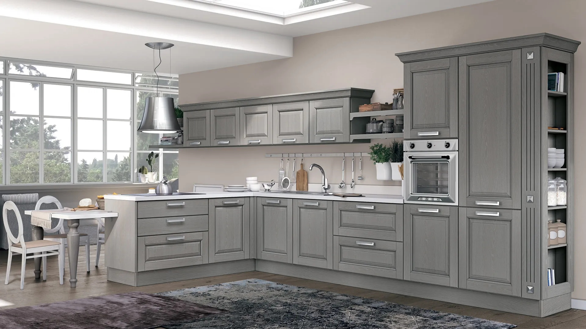 Tutte le cucine sono sottoposte a vapore acqueo e calore quotidianamente: scegliere la giusta tipologia di finitura è tanto imprescindibile quanto cura e manutenzione. Molte persone scelgono di ordinare una delle nostre soluzioni classiche in legno, in quanto resistono durante anni unendo al contempo funzionalità e stile. Grazie a una ricca gamma di composizioni in diverse cromie alla moda, potrai ricreare la composizione in stile tradizionale dei tuoi sogni. Le soluzioni classiche con penisola sono molto diffuse per merito della loro versatilità: da noi potrai vedere dal vivo le migliori proposte tra cui anche la Cucina classica Laura 01 di Lube visibile in foto.
