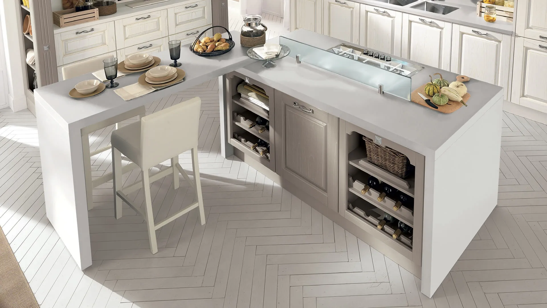 Le soluzioni classiche con isola sono molto diffuse per merito della loro poliedricità: da noi potrai visionare in prima persona le proposte più valide tra cui anche la Cucina classica Laura 03 di Lube visibile in foto. Tutte le cucine sono sottoposte a umidità e calore quotidianamente: scegliere la giusta tipologia di finitura è tanto essenziale quanto pulizia e manutenzione appropriate. Molte persone scelgono di ordinare una delle nostre soluzioni classiche in legno, in quanto resistono anno dopo anno unendo al contempo funzionalità e stile. Grazie a un ricco catalogo di composizioni in diverse cromie di design, potrai creare la composizione in stile tradizionale dei tuoi desideri.