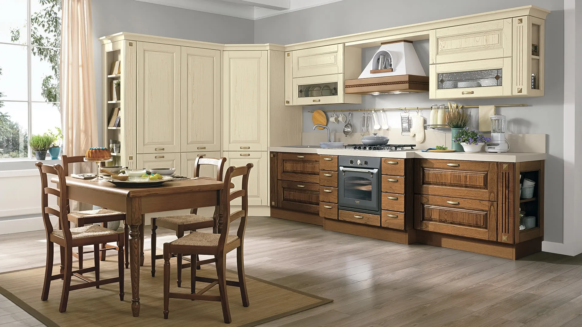 Se desideri un prodotto di richiamo classico, che duri a lungo negli anni mantenendo la bellezza originale, opta per una cucina classica in legno resistente e di grande qualità, come quella qui presente. Scopri nel nostro showroom un ricco catalogo di soluzioni del marchio: la serie completa Lube ti aspetta! Solo con le più belle soluzioni ad angolo potrai arredare lo spazio secondo le tue personali problematiche abitative ma in perfetto stile tradizionale. La Cucina classica Laura 06 di Lube in foto propone un mood assai funzionale, ricercato ed elegante, portavoce del tipico aspetto romantico delle Cucine Classiche.