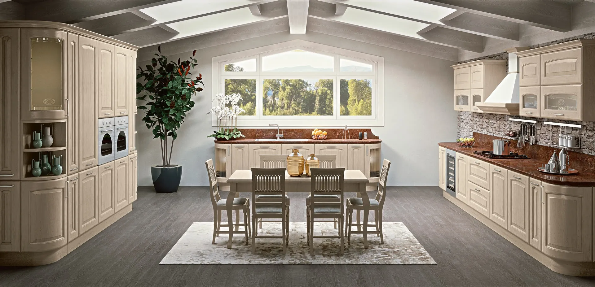Rendere gli ambienti agibili e confortevoli oggi è possibile grazie alla ricca linea di modelli ad angolo di stile tradizionale del noto e rinomato brand Lube. Le soluzioni in legno come quella qui disponibile garantiscono un grande vantaggio, quello di essere molto resistenti, eleganti e facili da mantenere. Le Cucine Classiche sono studiate per seguire tutte le problematiche abitative, hanno linee geometriche che offrono l'opportunità di rendere gli ambienti agibili e confortevoli e un fascino senza tempo. Se per ammobiliare la tua cucina cerchi una soluzione di grande pregio, durevole negli anni e vivibile, lasciati affascinare dalla Cucina Classica ad angolo Veronica 09 di Lube.